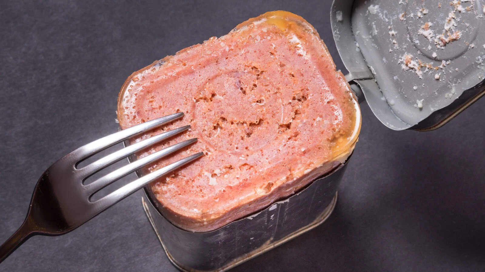 Straight from the tin, sliced cold over white rice or avocado—quick protein when fresh meat's scarce.